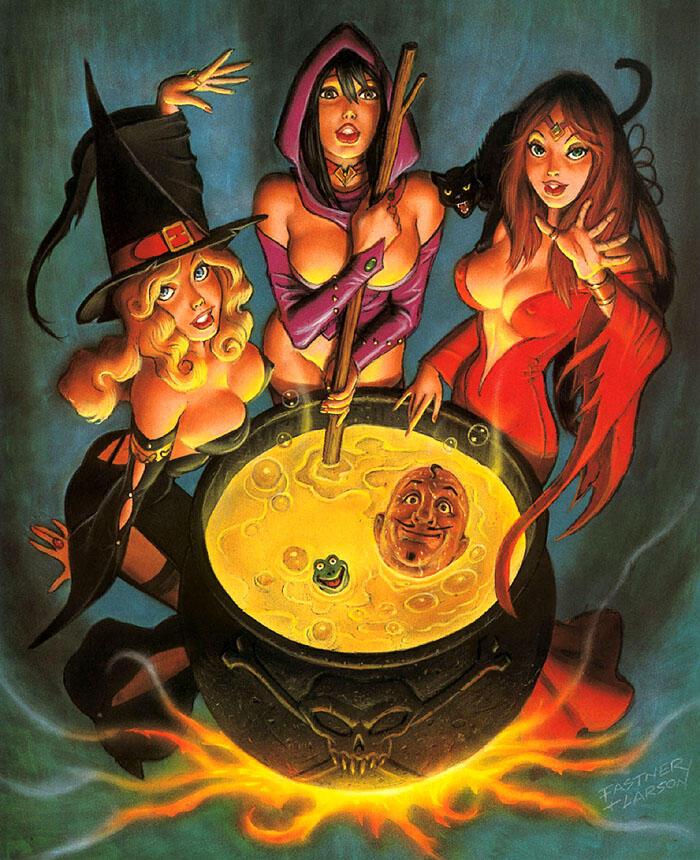 Ведьмочки находились в крайне возбужденном состоянии. Поляна была накрыта. Ярко пылал костер. Азартно булькал котел с тем самым.