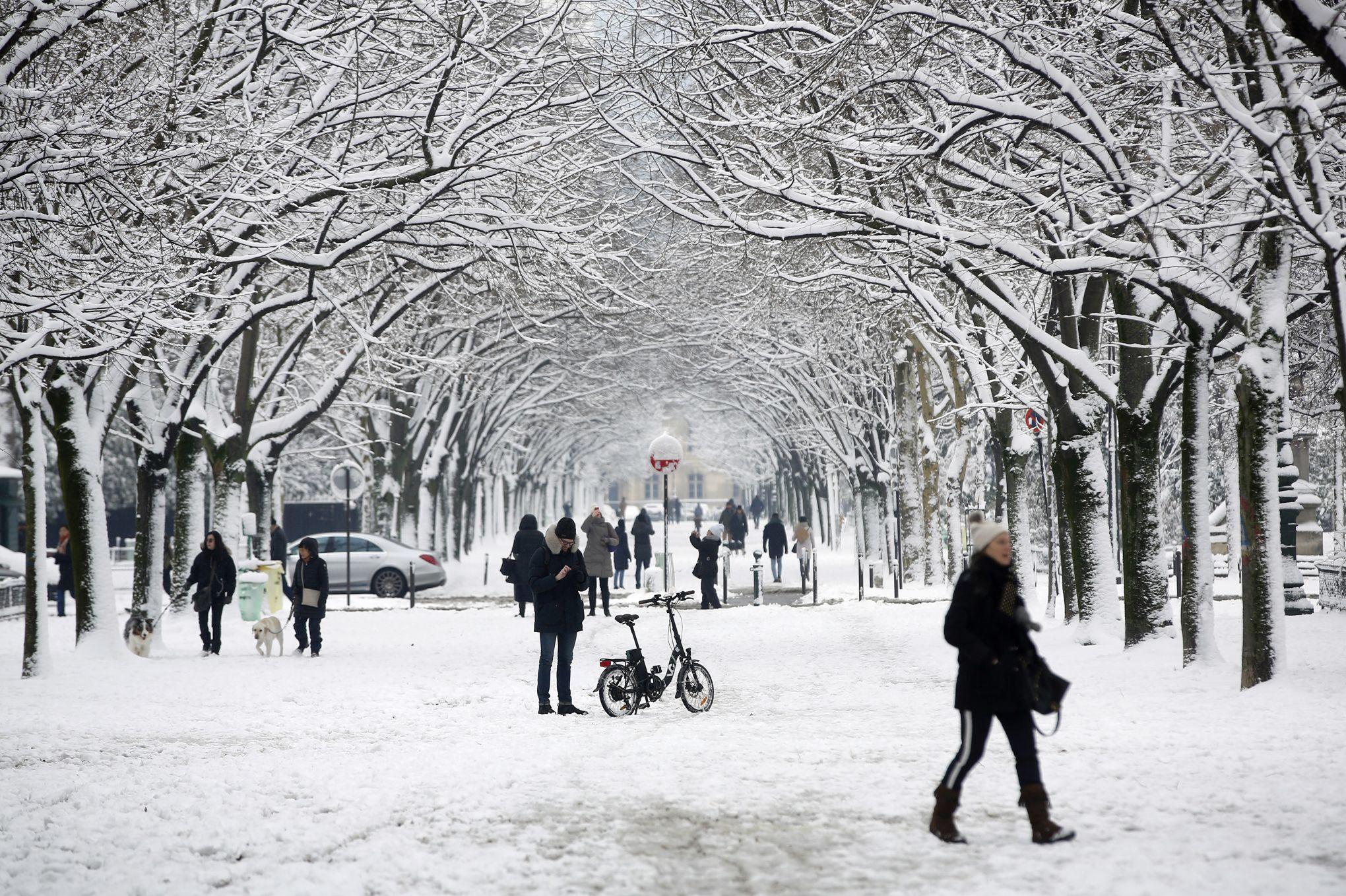 Париж завалило снегом