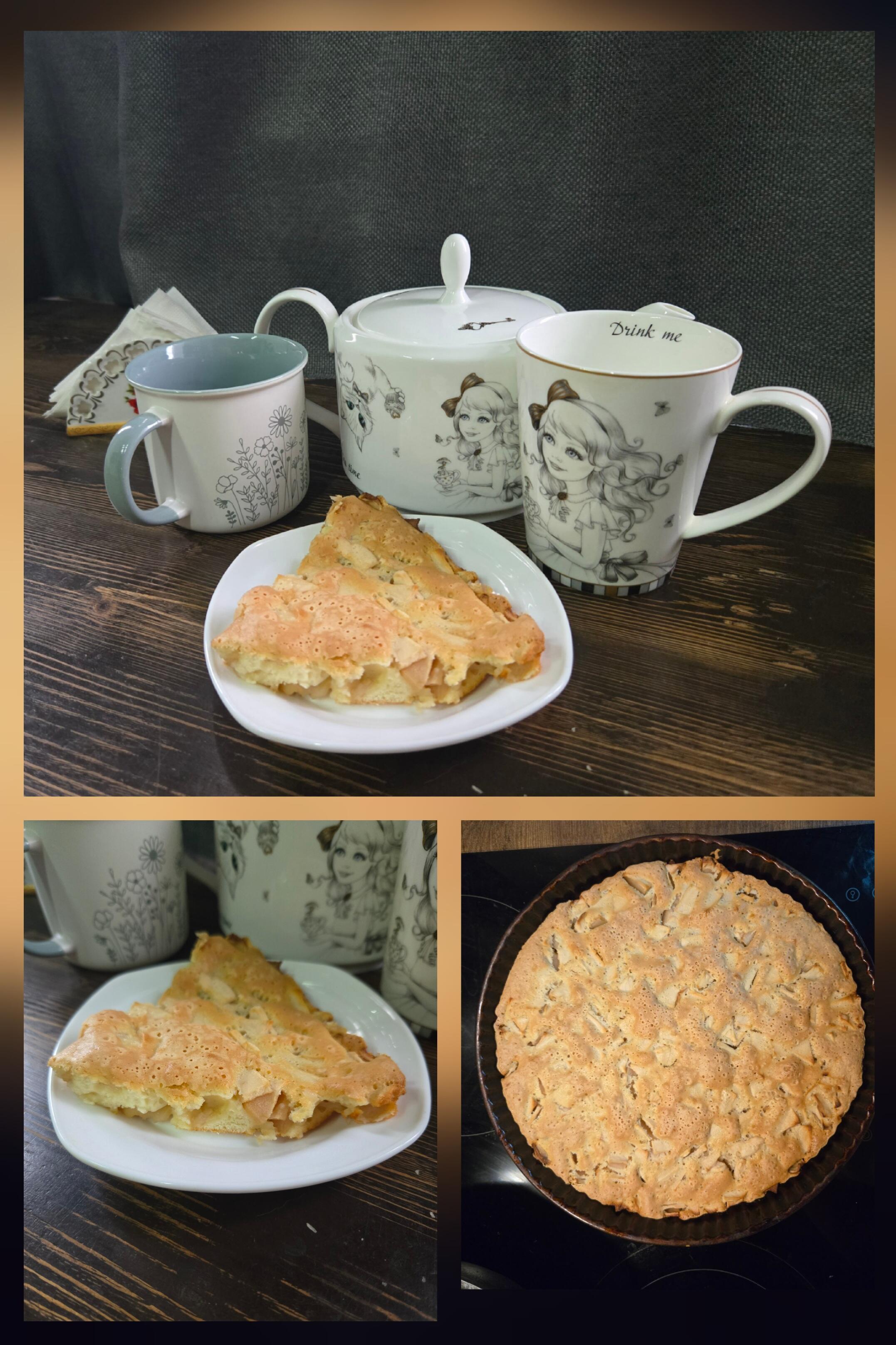 Приглашаю на шарлотку :) Вкусная, с кислыми яблочками... ммм... Зелёный чай с клубникой и персиком )