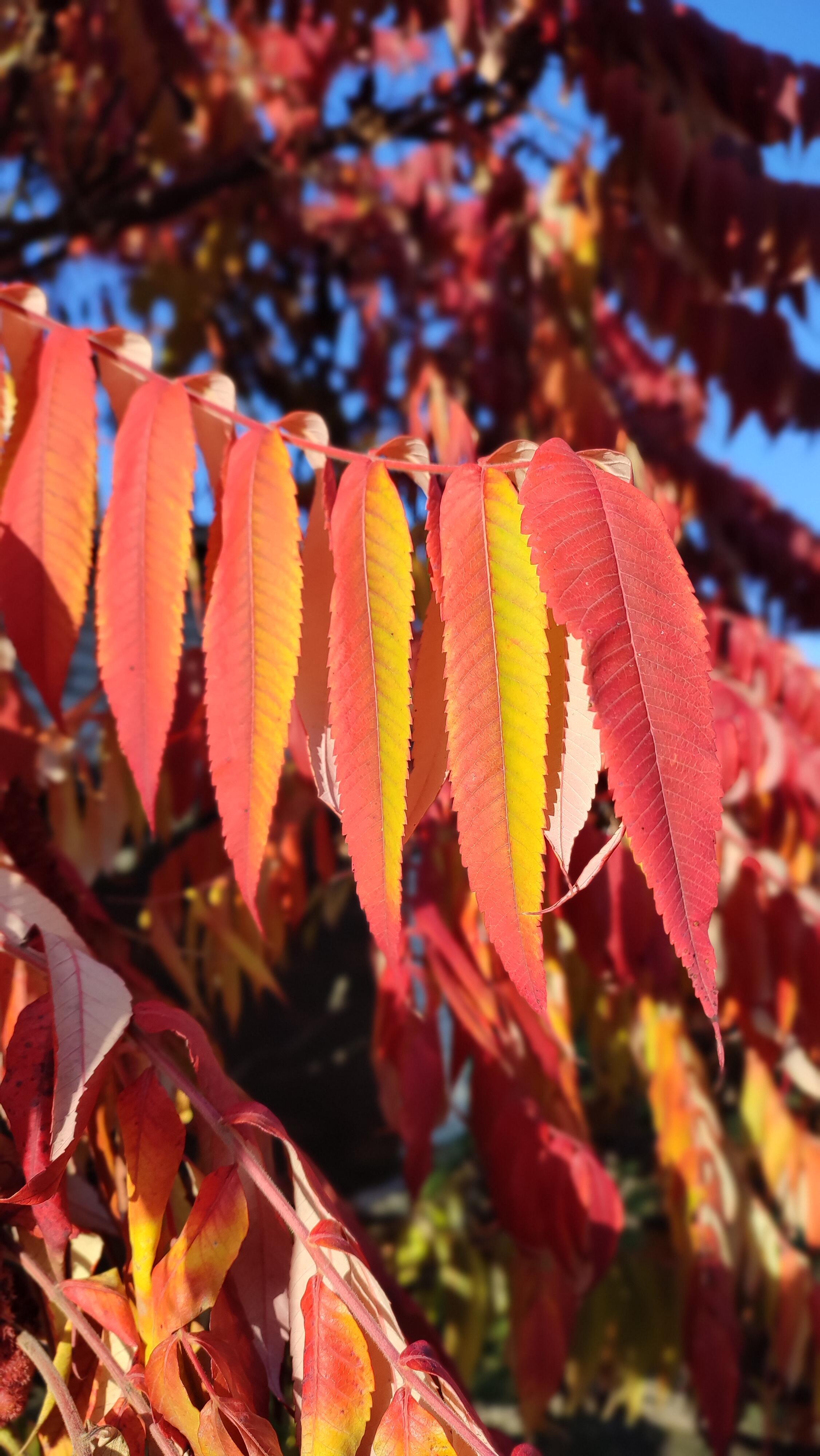 Запоздалое индейское лето... Маньчжурский орех порадовал ярким султаном из листьев-перьев)