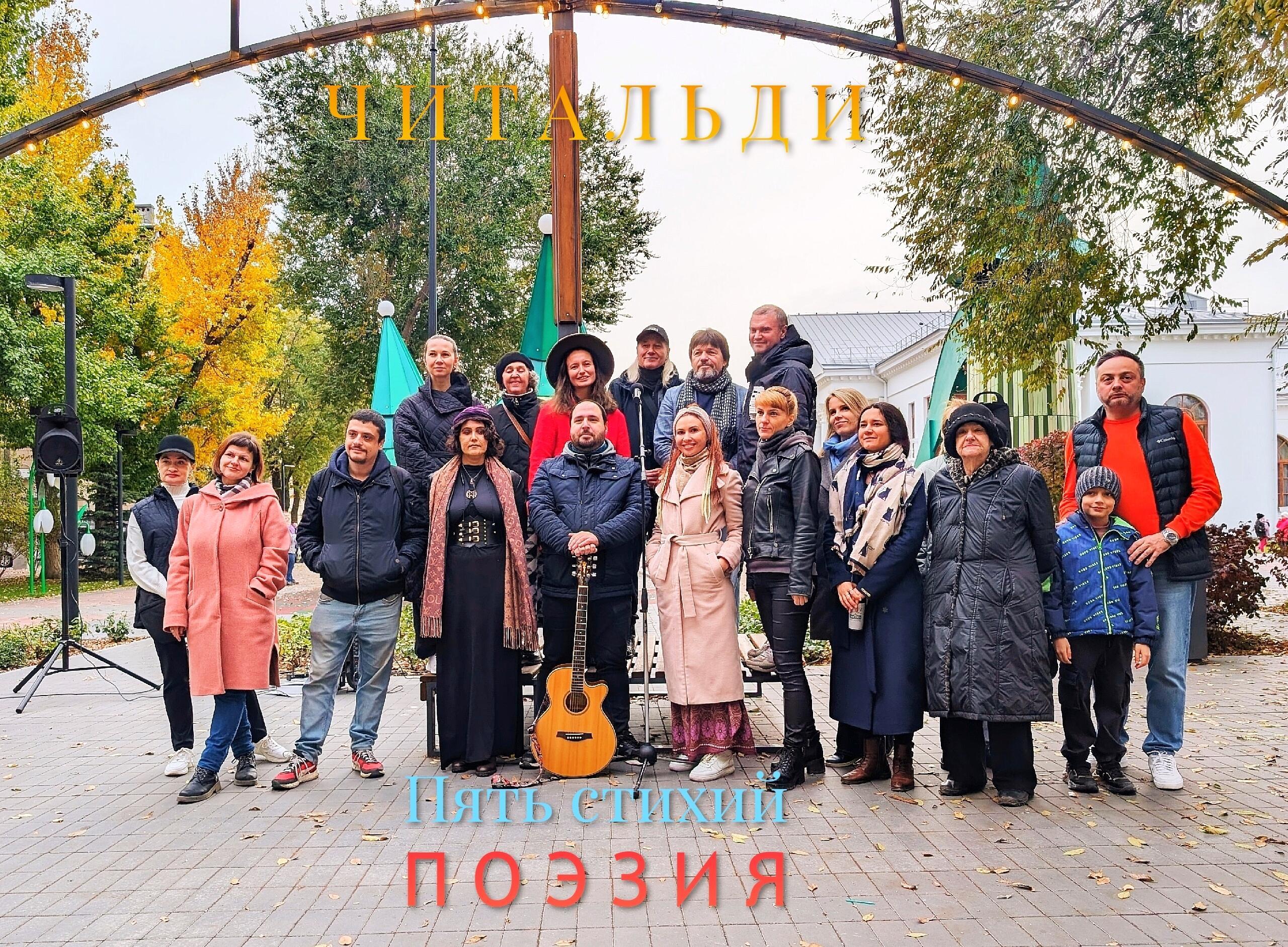 «Душа, как лист, звенит, перекликаясь со всей звенящей солнечной листвой» Поэт Н. М. Рубцов. 26 октября 2025 года в самом сердце Комсомольского сада на его знаменитой сцене у памятника «Царицынский трамвай» в ярко-жёлтых рамках литературного проекта «ЧИТАЛЬДИ. ПЯТЬ СТИХИЙ» состоялась долгожданная встреча волгоградских поэтов и поэтесс с жителями нашего города. Стихия «ЗЕМЛЯ» уступила своё уютное гнёздышко стихии «ПОЭЗИЯ». Финал проекта.