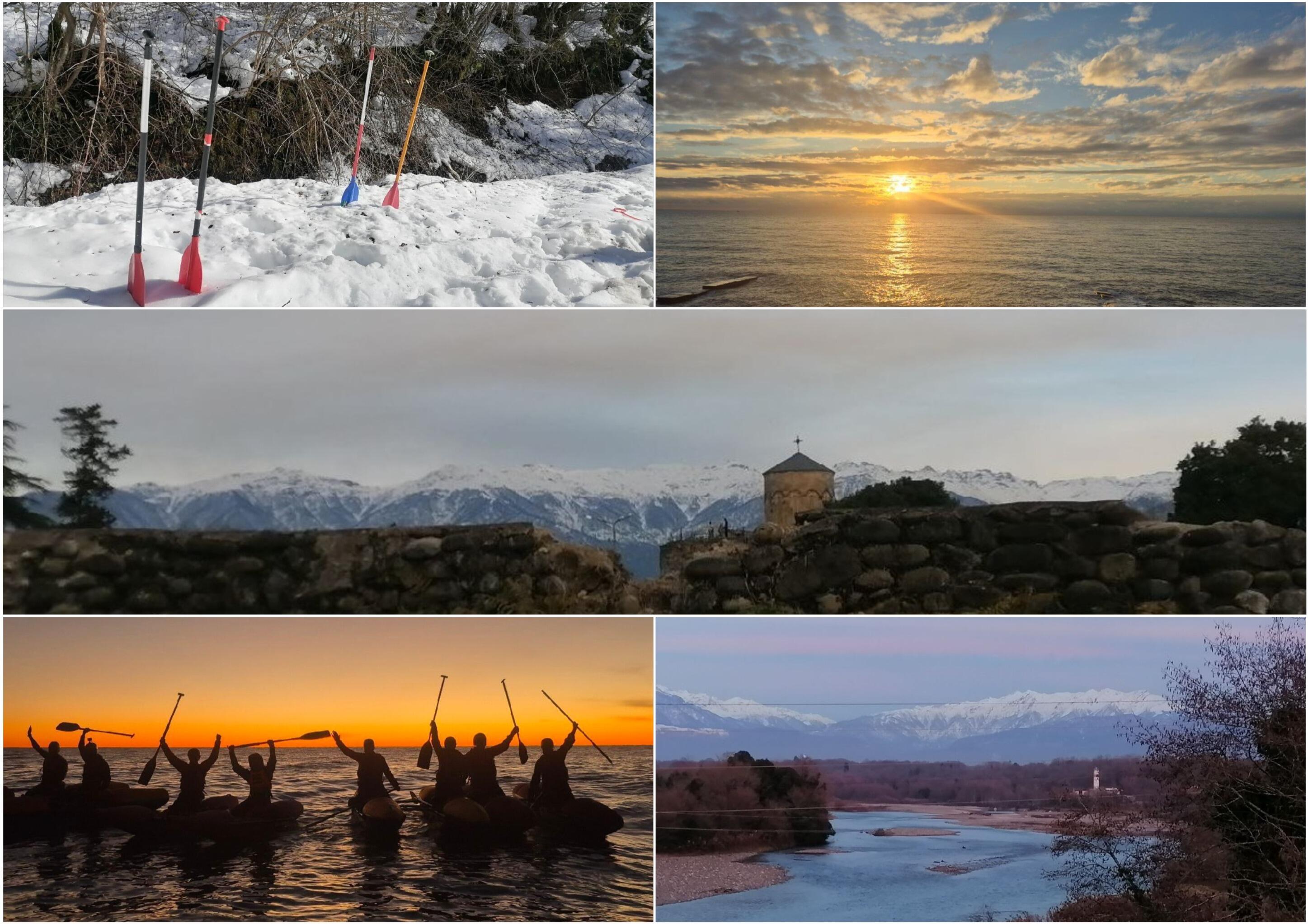 Гера Си, сыновние фотки - зимние, а снег только на одной, где вёсла в сугроб воткнуты) ну, если не считать заснеженные горы где-то там вдали)