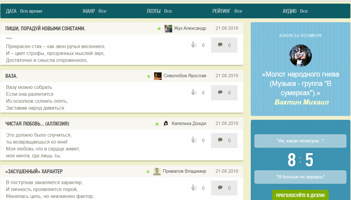 Наиболее популярные стихи на поэмбуке