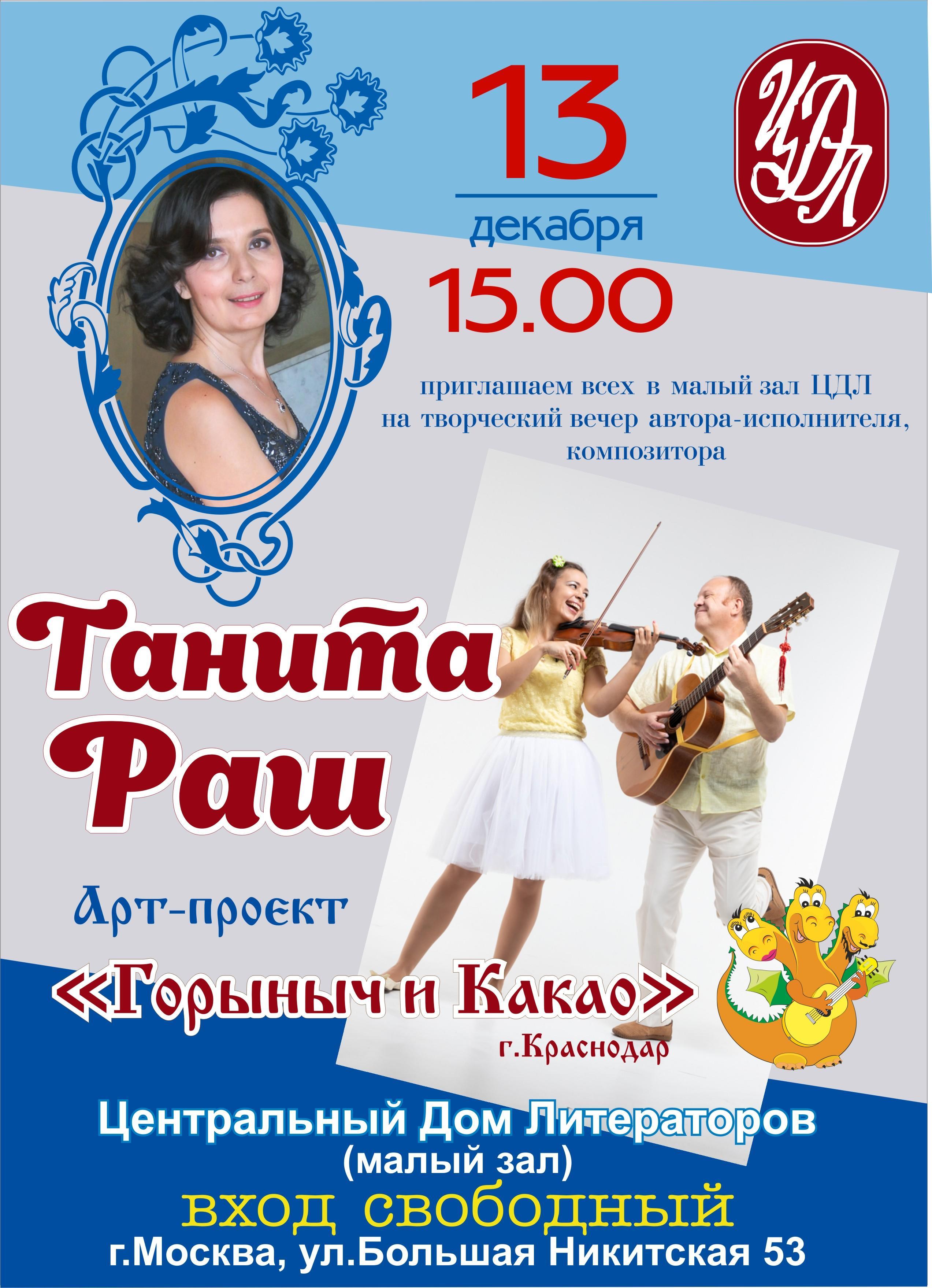 Приглашаю на творческий вечер в ЦДЛ