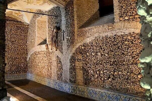 "Капелла была построена в XVI-м веке монахом-францисканцем. Сама часовня небольшая — всего 18,6 метров в длину и 11 метров в ширину, но здесь хранятся кости и черепа пяти тысяч монахов. Также есть два иссохших трупа, один из которых принадлежал ребёнку. Сейчас труп подвешен на железной цепи