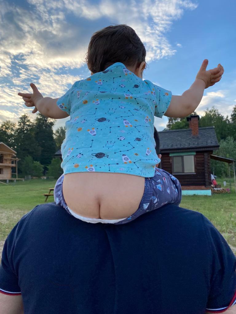 И с голой попой тянемся к небу, плечи отца опорой, нормально))