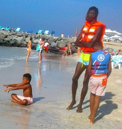 Долго я наблюдала за этим уважаемым отцом смуглого семейства. Сам не купается и детей не отпускает. Чудо-Юдо прямо.