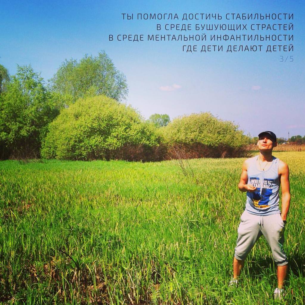 Андрей (персонаж, чью роль я играю)(также известен как Заяц) родился 32 года назад в тяжелом пространстве. Почти вся реальность лягла на его плечи. Страшность ситуации заключается в том, что это почти невыносимо, а выход я видел лишь один - самоубийство. Однажды я даже уже стоял на кухне с ножом у живота. Но я решил, что навести полный порядок в жизни все-таки возможно. И вот теперь я чувствую, что дело закончено. Это приятное ощущение. Будто полтора месяца ужасался не сдать экзамен, а сейчас вдруг сдал его случайно на отлично. Просто за красивые глазки. И идешь такой летним деньком по асфальту в туфлях и чувствуешь, как каждая клеточка тела вздыхает с облегчением и просто смотрит на солнце. Хихикать хочется. Все пространство рядом с тобой преобразилось. Разжалось. Рука, крепко держащая тебя за яйца, разжалась. Рука, держащая методичку, сама вышвыривает ЭТО в урну. Перед глазами родители мерещатся не бранящие, а хвалящие. Я чувствую большую силу, способную сделать многое и наблюдаю ツ